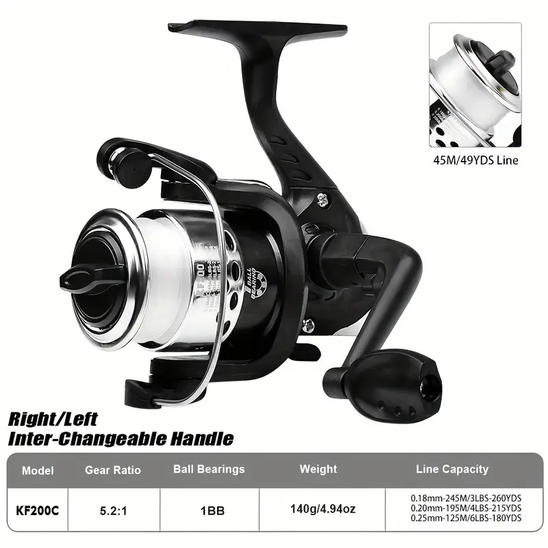 KF200C е висококачествена риболовна макара, съчетаваща лека конструкция, плавна работа и универсална употреба. С предавателно число 5.2:1, тя осигурява балансирано и ефективно навиване на влакното, а 1BB лагер допринася за гладкото въртене и стабилност.